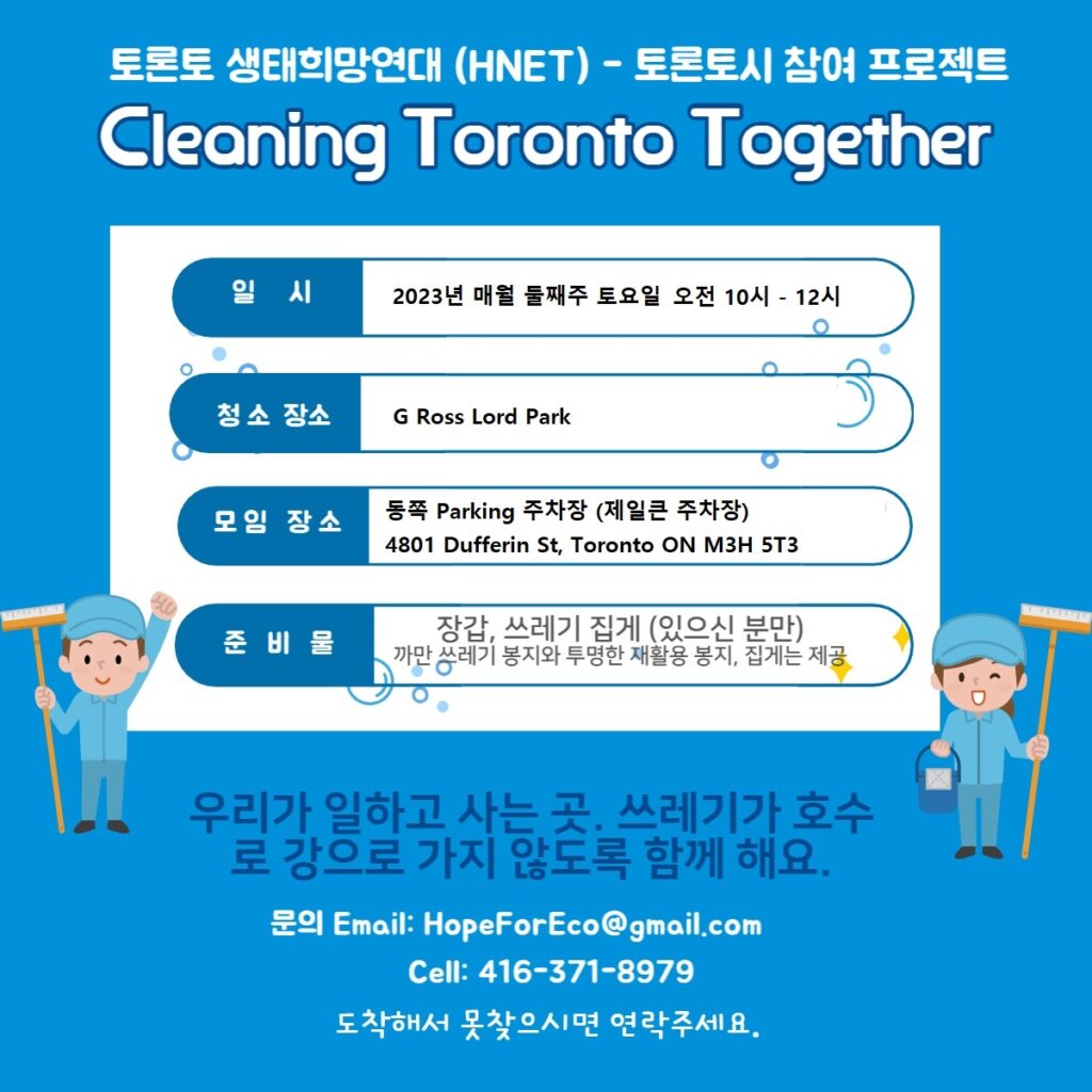 2022년 토론토시 주최로 도시 전역에서 열리는 봄맞이 대청소의 날 참여 계기로 토론토 생태희망 연대에서 월례 행사로 줍깅을 하고 있습니다.