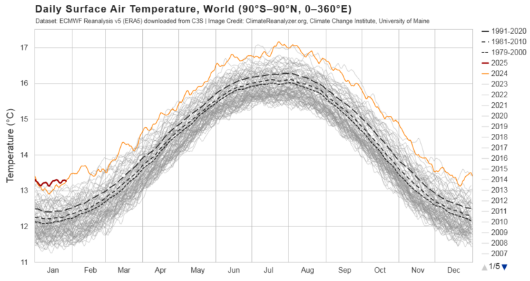 2025년 현재 세계 평균 지표면 기온 변화